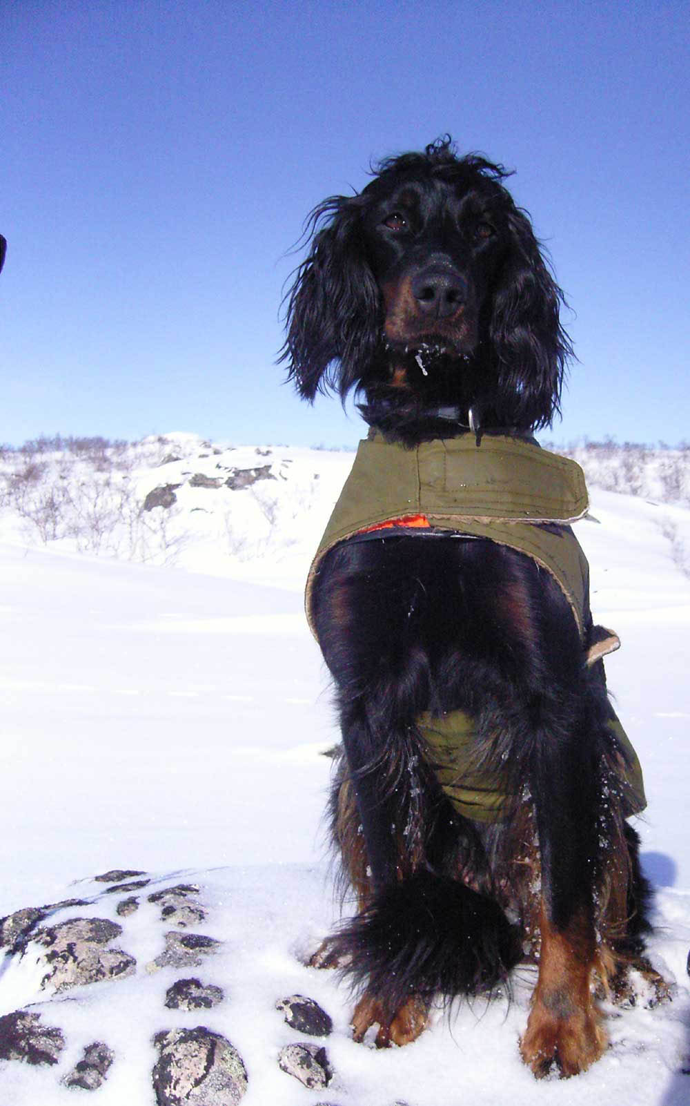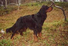 ![]() | Den første Gordon Setteren var jeg så heldig å få kjøpt fra Rolf Aunes kennel. Hun het Kalvsjølias Mira 12579/82, og ble en meget god jakthund av den gamle skogsfugltypen. Rapporterte gjorde hund tidlig og var djerv på fuglen. Jeg lærte mye om jakt med hund av Mira. Hun hadde et meget stødig gemytt og reiste trofast med meg rundt om i landet under utdanning og spesialisering på 1980 tallet. Hun var en kløpper med pulken på ukesturene som vi foretok i fjellområdene i Salten / Sulitjelma og i Nord-Sverige (Sarek nasjonalpark) etter at jeg flyttet til Bodø i 1884. |